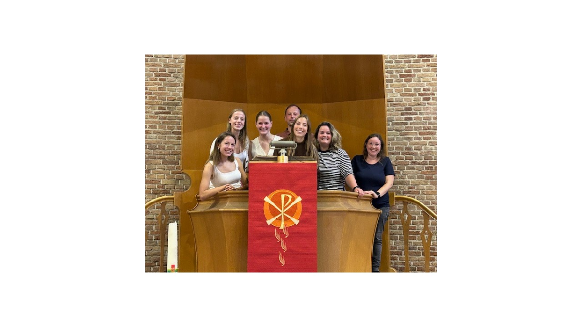 De zanggroep van weleer oefende voor de uitwijdingsdienst (7-9-25): zij zwaaien met zang mee uit! Per ongeluk kruisten onze wegen. En dat zorgde voor een spontaan idee. ik vroeg om kansel-vulling En ik kreeg kansel-vulling. Zijn dit mij opvolgers?