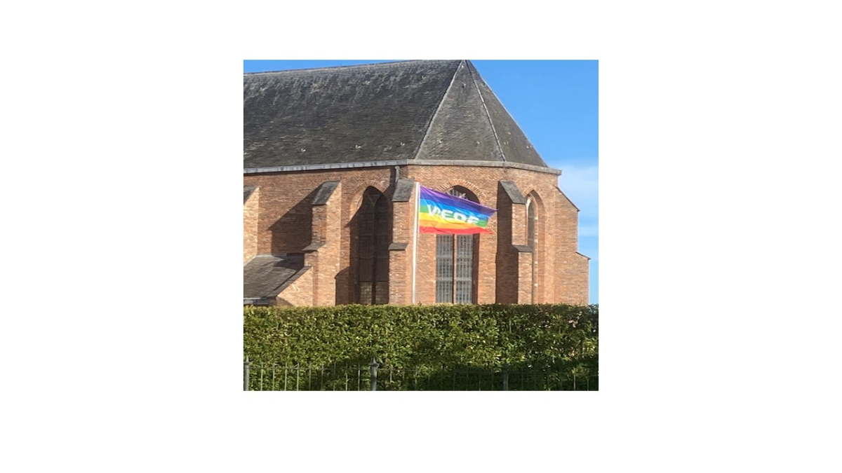 In de week na Pasen hadden wij onze jaarlijkse fietstocht. Dit jaar een rondje Oldenburg (Duitsland). In zes dagen ruim zeshonderd kilometer gefietst. Het mooie van fietsen is dat je lekker actief bent, de frisse lucht opsnuift en je bovenal heel veel ziet. In de Achterhoek hing bij verscheidene kerken de regenboogvlag. Elke kleur heeft zijn eigen betekenis en symboliseert een aspect van diversiteit en gelijkheid. Maar heel opvallend was dat woord "Vrede" verweven in de vlag. Heel treffend in deze onrustige tijd.